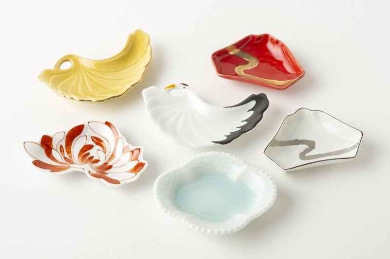 有田焼 おてしょ皿 1,320円~手元に塩を盛る器として使われていたことから、手塩皿と名付けられた小さなお皿。絵付けや装飾など、技術の粋をこらしたおてしょ皿が、お祝いの食卓を華やかに彩ります。