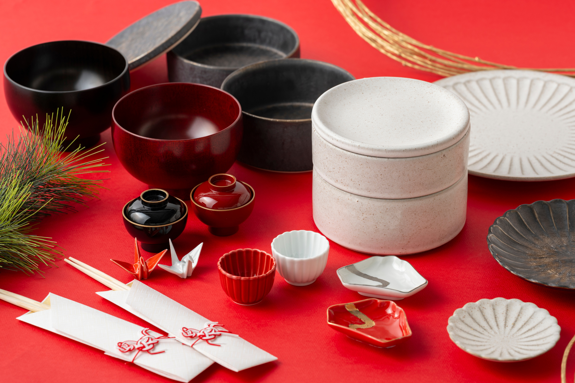 漆椀やお重、小鉢やプレートなど、食卓がぱっと華やぐ器は、お正月の食材をより引き立ててくれます。