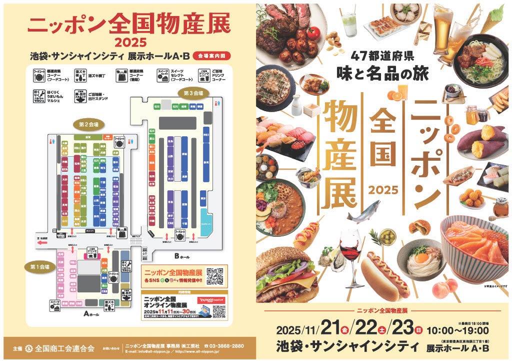 全国商工会連合会(東京都千代田区、会長:森 義久)は、2025年11月21日(金)~11月23日(日)の3日間、池袋サンシャインシティ展示ホールA・Bにて「ニッポン全国物産展 2025」を開催します。