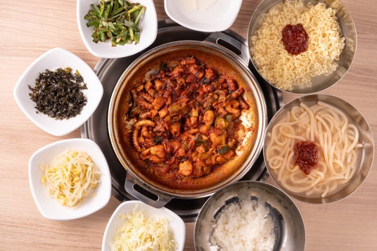 「ケミチプ」は、1972年に韓国・釜山の南浦洞国際市場で創業して以来、50年以上の歴史を持つ専門店です。その看板メニューは、新鮮なナクチ(手長タコ)、旨みたっぷりのコプチャン(ホルモン)、そしてぷりぷりのセウ(エビ)を組み合わせた名物鍋「ナッコプセ」です。
