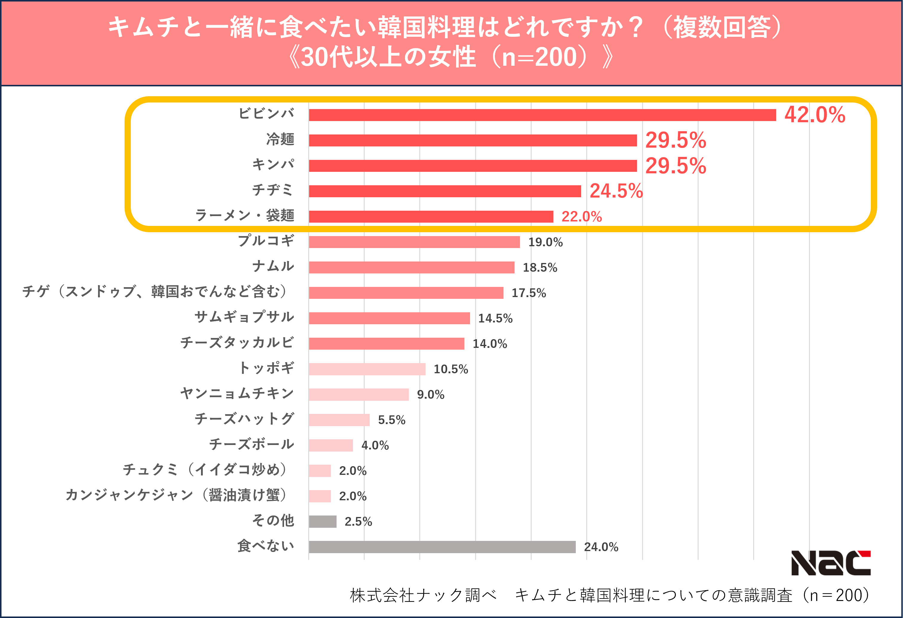 韓国食品スーパー「Yesmart」を運営する株式会社ナック(本社:東京都新宿区、代表取締役社長:吉村 寛)は、11月22日「韓国キムチの日」に向けて、全国20代以上の男女500名を対象に「キムチと韓国料理についての意識調査」を実施しました。