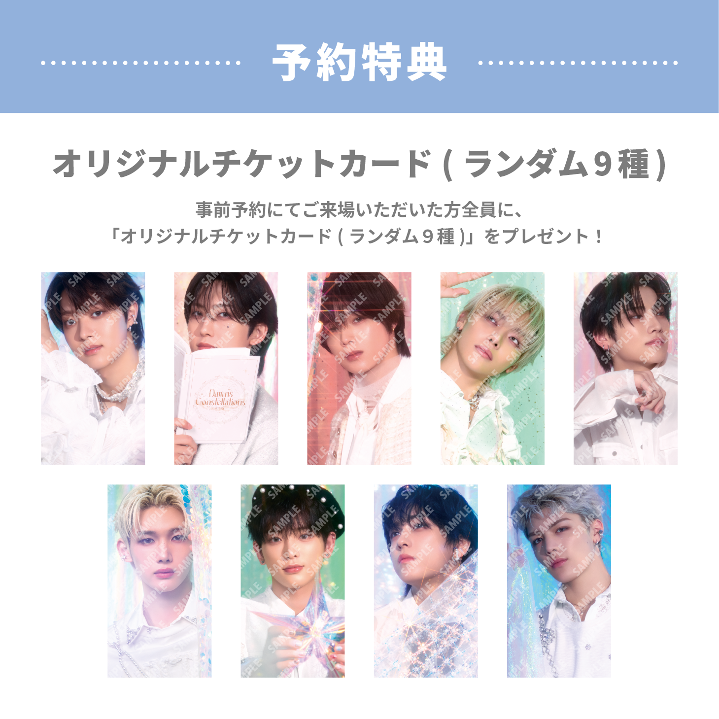 ご注文いただいた方に「オリジナルチケットカード(全9種)」をランダムで1枚プレゼント。