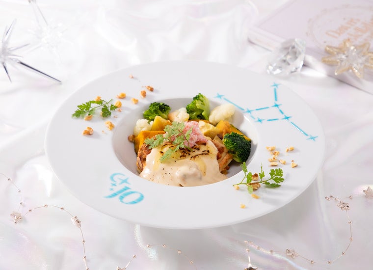 メニューは、メンバーたちの星座を表現したメンバー名入りのフードプレートをはじめ、天の川や星空に浮かぶ月をモチーフにしたデザート、星型アイスが浮かぶドリンクなど、ロマンティックで神秘的なラインアップをご用意いたしました。