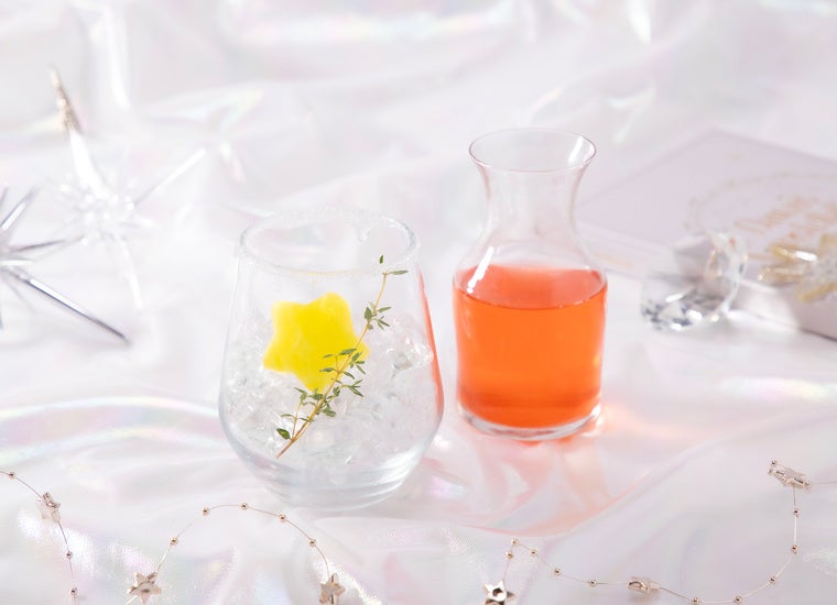 星型の氷が浮かぶ、爽やかピーチフレーバーのソーダ