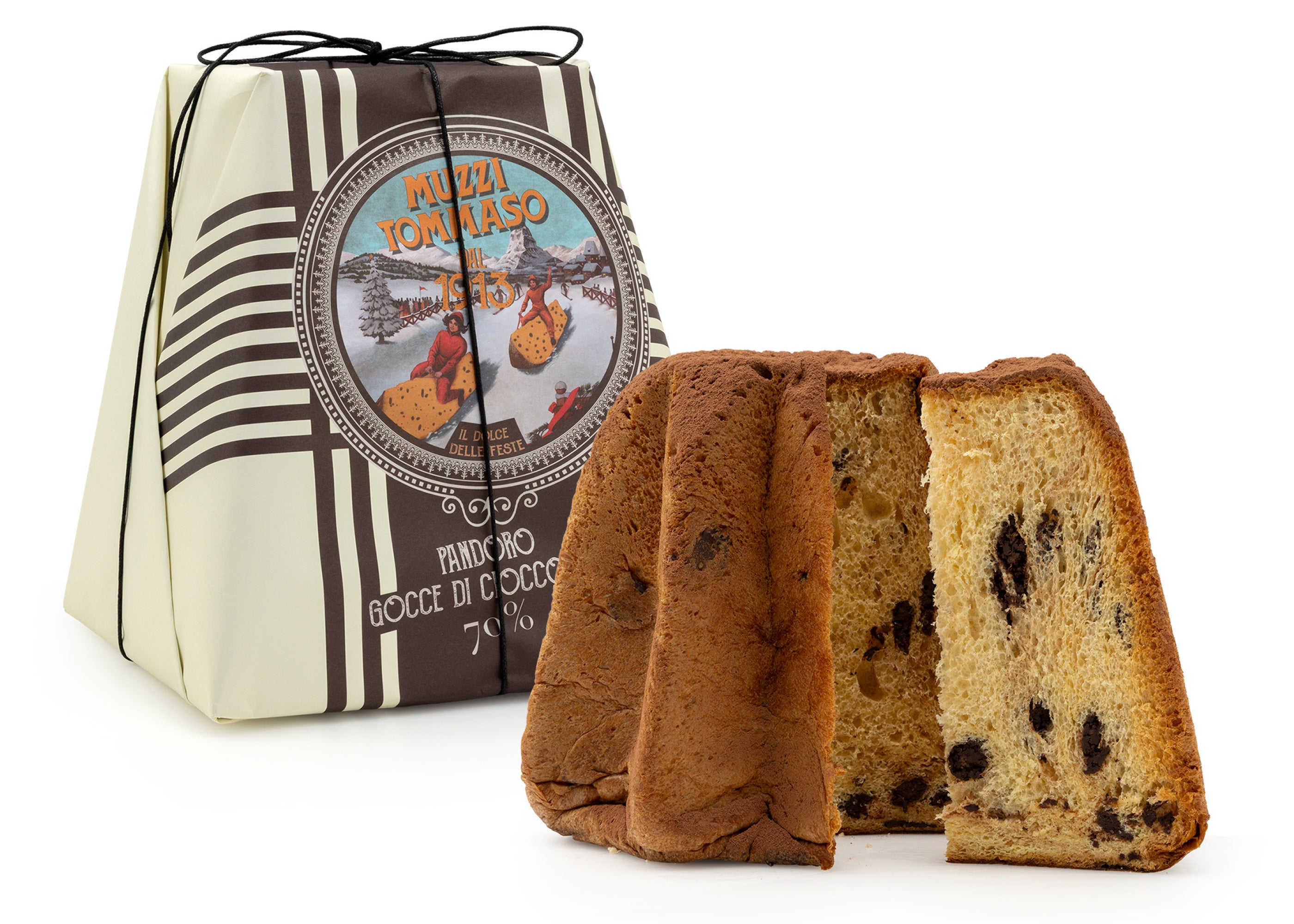 芳醇な味わいのパンドーロ生地にチョコレートチップを加えたリッチな美味しさです。