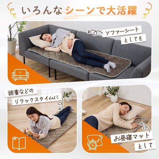ふわふわで滑らかな肌触りが心地よい、フランネル素材のごろ寝マット。