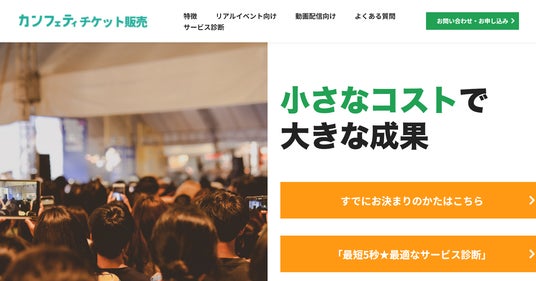 イベント主催者がWEBから登録するだけで簡単にチケットが販売できるサービスです。リアル・オンライン両方のイベントに対応、販売手数料は売れた分だけ、リアルタイムで内容編集や販売状況の確認も可能です。