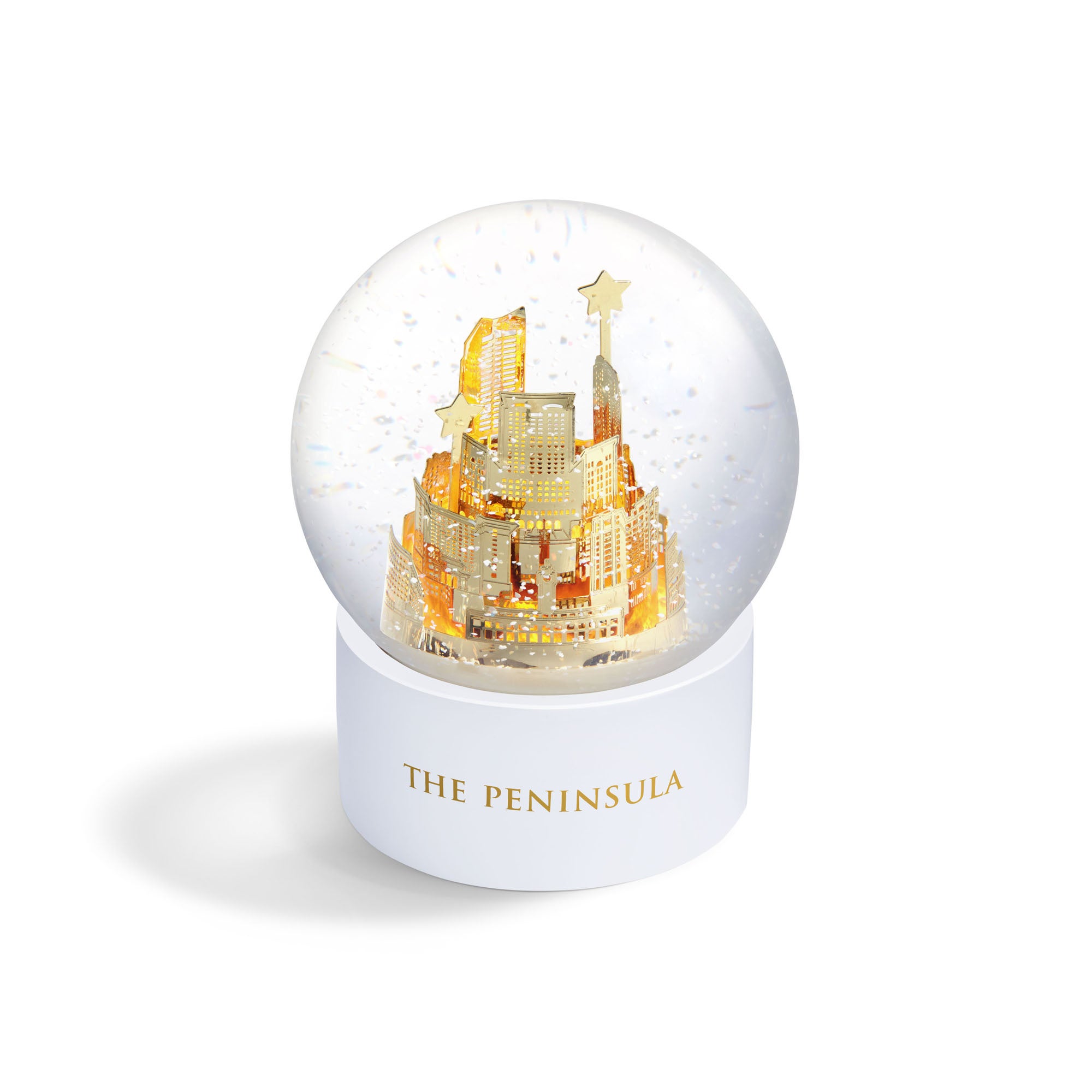 そっとひと振りすると、煌めく雪が魔法のように舞い、世界12都市に位置するザ・ペニンシュラホテルズのシルエットを優しく包み込みます。エレガンスと遊び心を兼ね備えた特別な一品は、眺めるたびに心躍るひとときをお届けします。