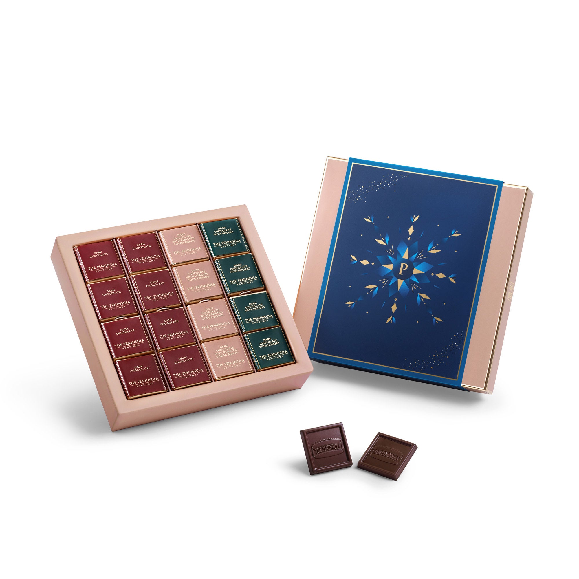 ザ・ペニンシュラ アールグレイ ガナッシュ 2個 / グラン・クリュ ドミニカ 2個 / ダークチョコレートキャレ 4枚 / ヌガー入りダークチョコレートキャレ 4枚 / ピーカンナッツチョコレート 200g