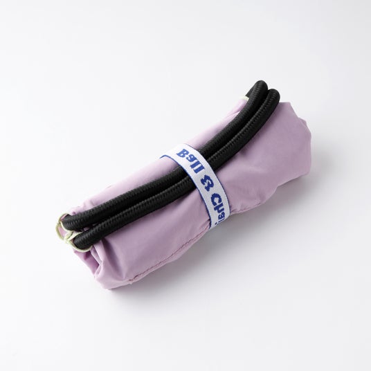 付属のゴムバンドを使えば、バッグを簡単にコンパクトにまとめることができます。くるっと丸めてゴムで留めるだけの手軽さが魅力で、折りたたむと手のひらサイズになるため、持ち運びにも便利。
