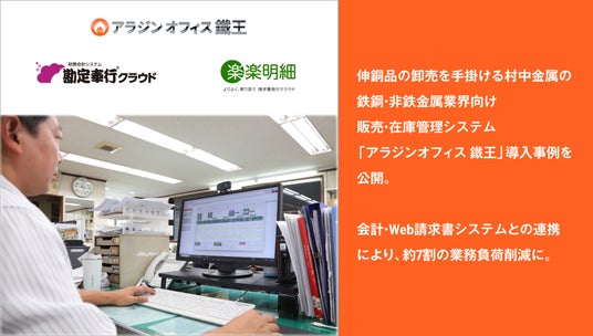 黄銅棒をはじめとする伸銅品の卸売を手掛ける村中金属は「アラジンオフィス 鐵王」を導入し、会計システム・Web請求書システムとの連携により、約7割の業務負荷を削減しました。