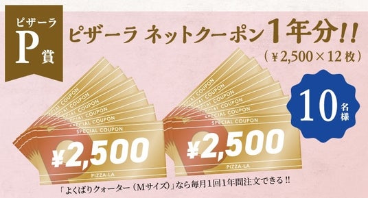 【ピザーラ賞:ピザーラネットクーポン1年分 10名様】