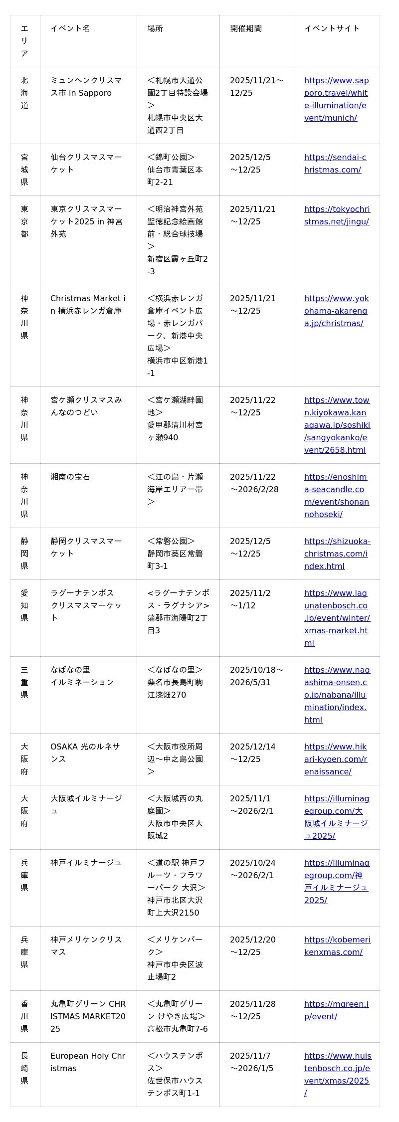 また、日本各地でもクリスマスマーケットが開催されています。ぜひ、本場の雰囲気さながらのイルミネーションやフードとともに、グリューワインをお楽しみください。