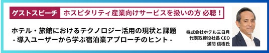 「人手不足」「単価アップ」「顧客体験価値の最大化」など、宿泊・飲食・観光事業者が直面する課題を、最新のテクノロジー・デジタルソリューションで解決する商談展です。