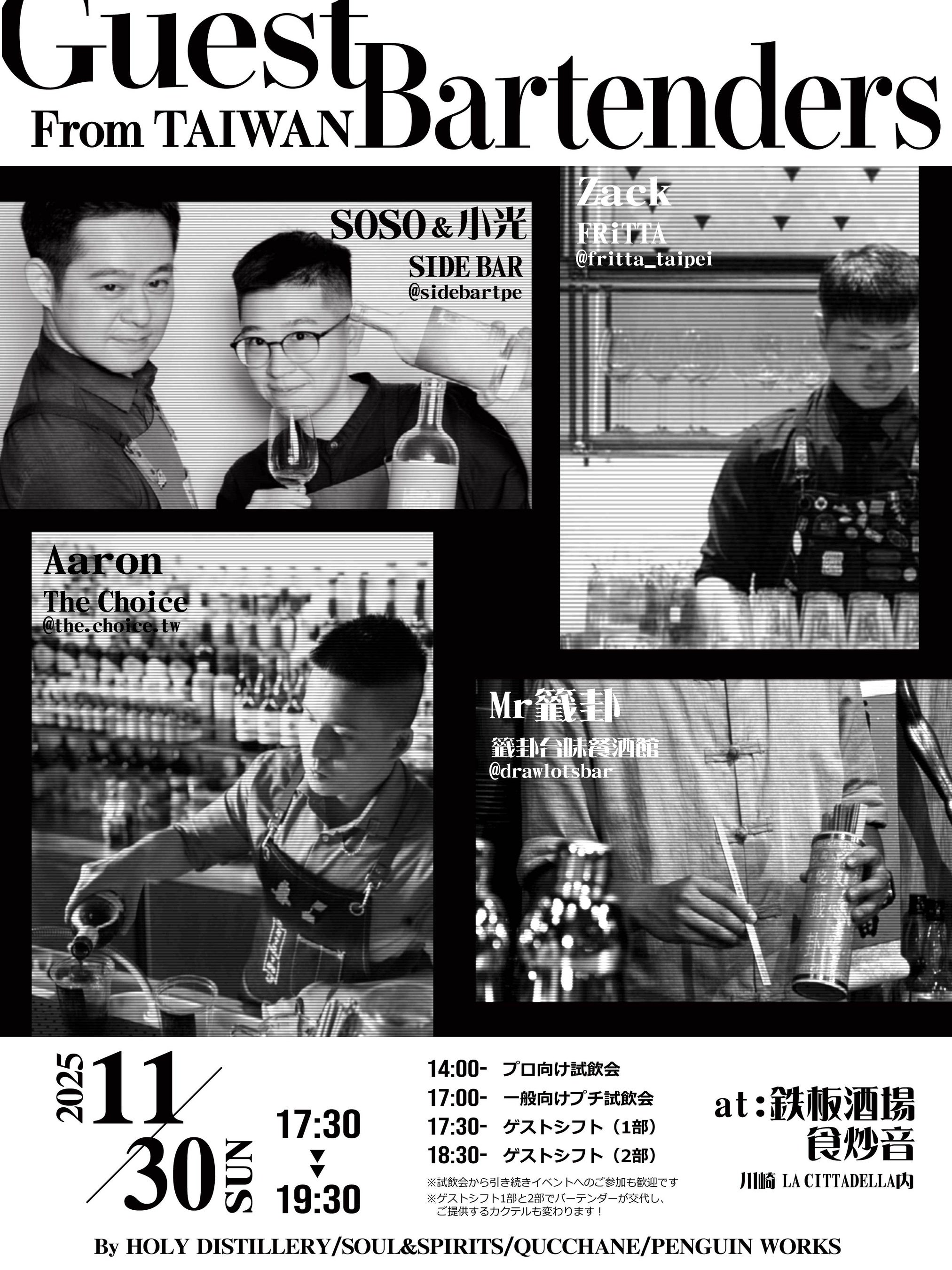 12月2日までクラウドファンディングを展開中の他、11月30日には川崎にて台湾より蒸留家とバーテンダーを招待した発売記念イベントを開催いたします。