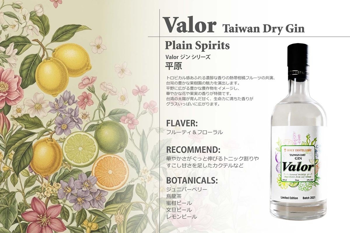 VALOR GIN PLAIN SPIRITSトロピカル感あふれる濃醇な香りの熱帶柑橘フルーツの共演、台灣の豊かな果樹園の魅力を演出します。平野に広がる豊かな農作物をイメージし、華やかな花や果実の香りが特徴です。台湾の太陽が育んだ甘く、生命力に満ちた香りがグラスいっぱいに広がります。