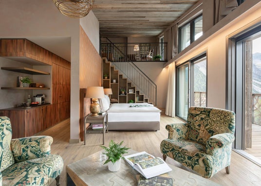 スイス・アローザにある当ホテルは、完全にカーボンニュートラルかつプラスチックフリーを実現しています。冷暖房は革新的なアイスバッテリー(氷を使ってエネルギーを蓄え、冷暖房や空調に活用するシステム)で賄われており、この最先端の温度変換システムは高度な熱回収システムと組み合わされているため、化石燃料を一切使用せずに自給自足で運営されています。