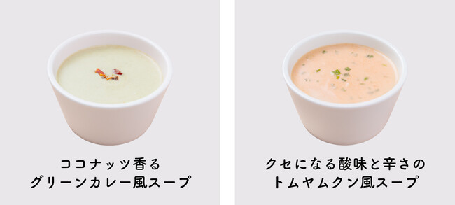 商品名:ココナッツ香るグリーンカレー風スープ /クセになる酸味と辛さのトムヤムクン風スープ
