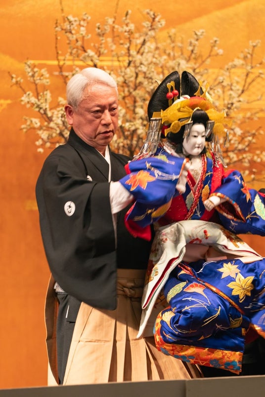 今年ブームの歌舞伎、能楽と並ぶ日本三大伝統芸能の一つであり、重要無形文化財に指定されている「人形浄瑠璃文楽」を国の有形文化財「三養荘」にて鑑賞いただける本企画は今回で3年目。新しい伝統芸能体験としてご好評をいただき、 2年連続で完売いたしました。ベテラン人形遣いの吉田勘彌(よしだかんや)氏のプロデュースのもと、人間国宝で截金(きりかね)作家の江里佐代子(えりさよこ)氏の作品『峰光(ほうこう)』を背景にした舞台での文楽鑑賞のほか、文楽の見方や演目の見どころをわかりやすく解説するワークショップ、人形を手に取っての記念撮影や技芸員との交流など、「本物の文楽に触れたい」というご要望に応えるプログラムです。