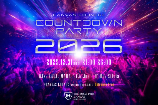 ザ ロイヤルパーク キャンバス 銀座コリドー(所在地:東京都中央区銀座6-2-11、総支配人:関 寛子)では、2025年12月31日(水)の大晦日に2F「CANVAS LOUNGE produced by P.C.M.」にて、スペシャルDJナイト「COUNTDOWN PARTY 2026」を行います。新しい年の幕開けを音と光に酔いしれながら躍り明かすイベントです。
