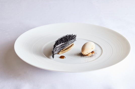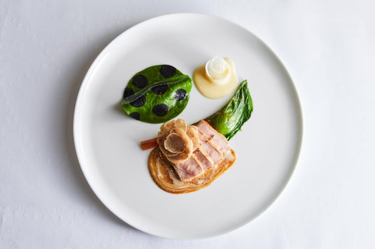 LA COTE DE VEAU DE BRETAGNE (L’OSIER)Raviole cremeuse 《noire et verte》, Rapee de truffe blanche, Jus 《Marbre》