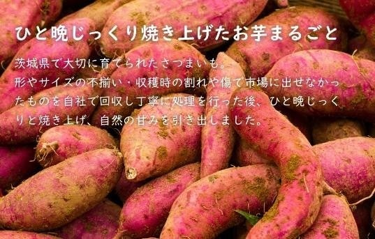 さつまいも形やサイズの不揃い・収穫時の割れや傷で市場に出せなかったさつまいもを自社で丁寧に処理した後、ひと晩かけてじっくりと焼き上げ、自然の甘味を引き出しました。