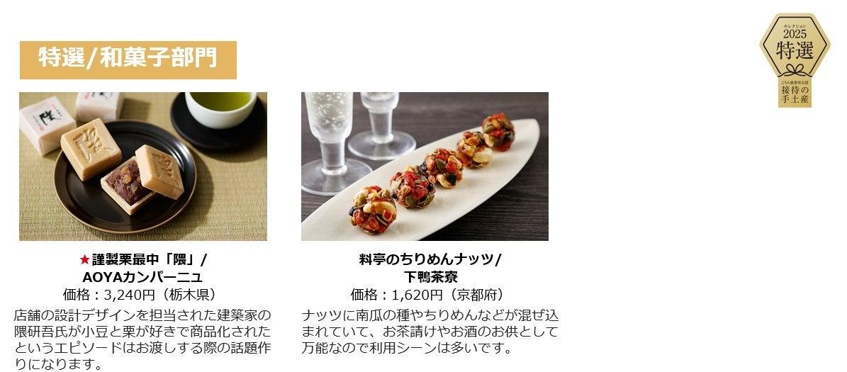 <「『接待の手土産』セレクション 2025」 特選20品の傾向>