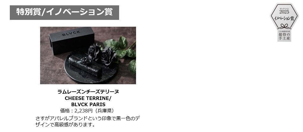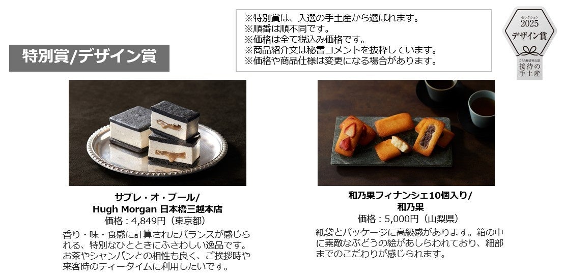 入選の中から特別賞として、「デザイン賞」「グローバル賞」「イノベーション賞」を5品認定しました。またセレクション開催10周年を記念し、歴代特選の中から人気の手土産を選ぶユーザー投票を、8月4日(月)より実施しました。各部門で最も支持を集めた手土産の結果も発表しています。