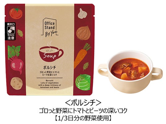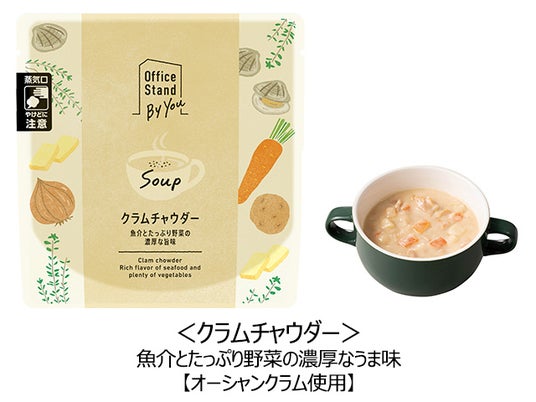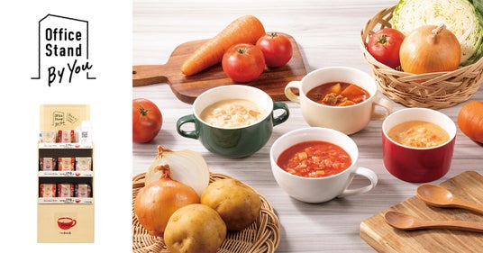 老舗中村屋の新たな事業への挑戦として立ち上げた、法人向けオフィス常設型の社食サービスです。オフィスでの食の時間をより豊かにし、働く活力や心のゆとりを支えることを目指して、1927(昭和2)年のレストラン開設から培った調理技術を生かし、シェフが開発したオフィス専用のスープをお届けします。1.月額利用料と商品代の一部を企業が負担し、従業員が手軽に購入可能