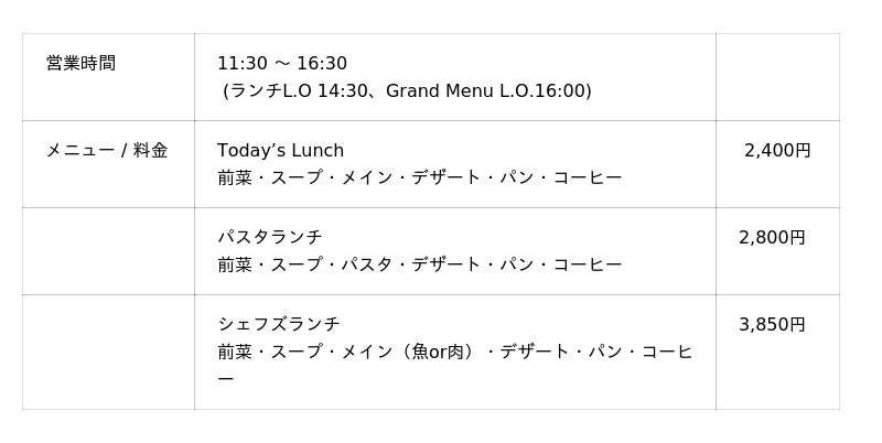 シェフズランチ(週末)