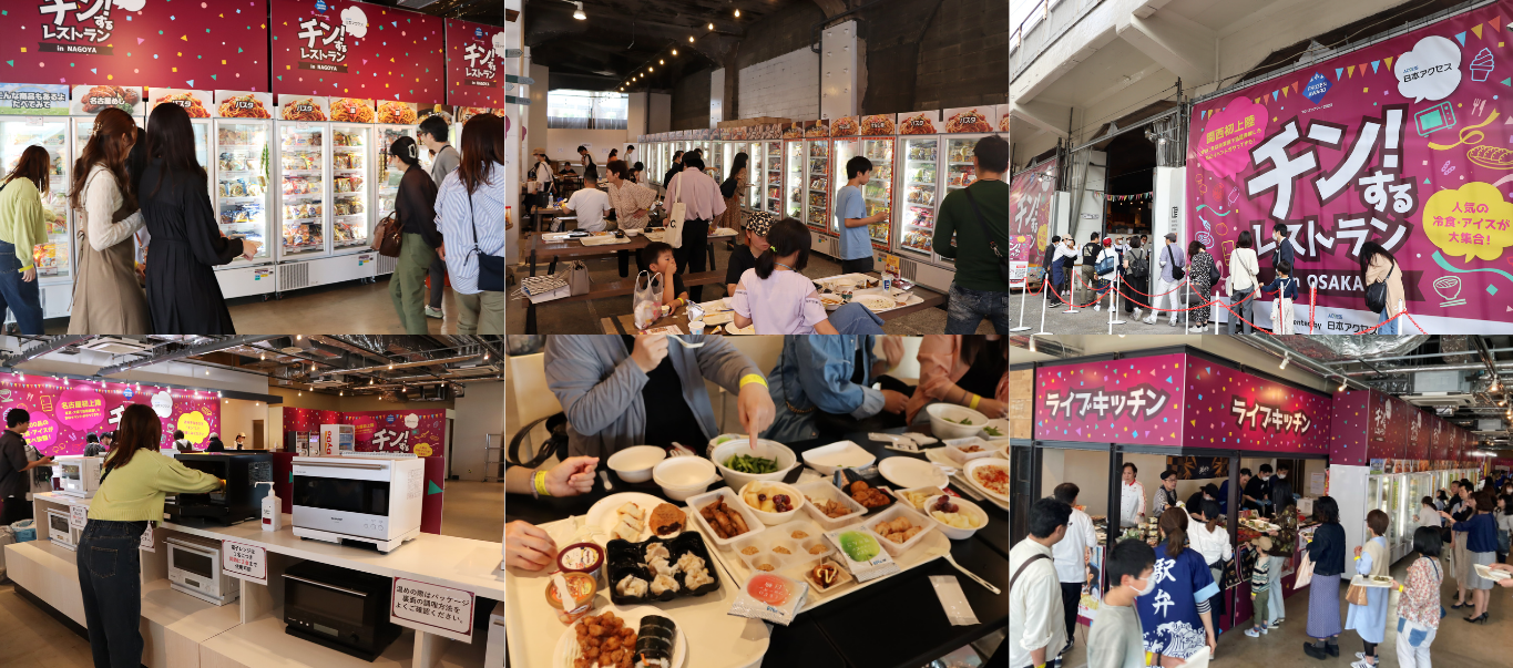 「チン!するレストラン」は、食品総合卸の日本アクセスが主催する一般消費者向けイベントです。冷凍食品・アイスクリームの魅力を実際の体験を通じて伝え、需要の創出と市場の活性化を目的としています。2022年10月に東京・秋葉原で初開催し、予約開始2日目にチケット完売、キャンセル待ちは8,000組を超えるなど大きな反響を呼びました。以降、大阪・梅田、愛知・名古屋でも開催し、各地で好評を得ています。「チン!するレストランin SAPPORO」では、約200種類の冷凍食品・アイスクリームをご用意、北海道ならではの人気商品も登場予定です。