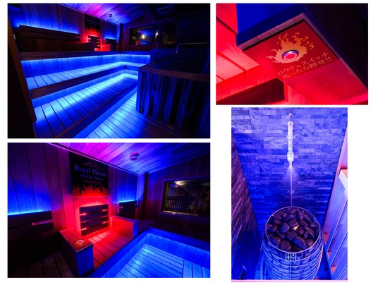 HUUMヒーターのサウナストーンに、自分のタイミングで水をかけて温度・湿度を調整できる“王様席(玉座)”を設置した「ロイヤル・スローン・サウナ」へと進化しました。日本でもほとんど例のない、利用者が“座ったままセルフロウリュを個別に操れる王様席(玉座)”を導入し、より心地よい熱と発汗が楽しめるサウナへ生まれ変わっています。