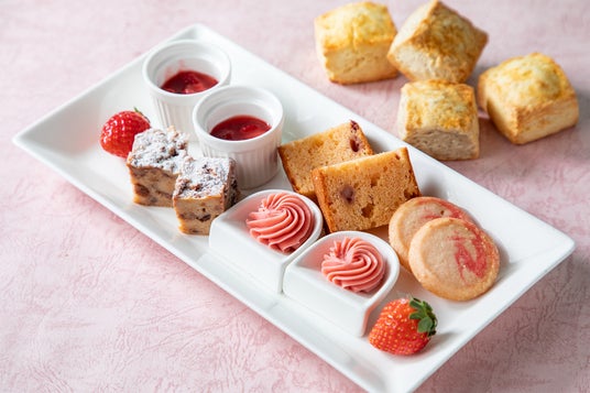 焼き菓子では、紅茶も香るパウンドケーキ、ダイヤモンドの意味を持つ“ディアマンクッキー”と、ホテル内で水耕栽培をしているスイートバジルと苺のコラボレーション“コンフィチュール”や、苺やフランボワーズなどを入れた“ミックスベリーバター”で楽しむ2種類のスコーンがティースタンドに彩り、皆様の午後のひとときを華やかにします。