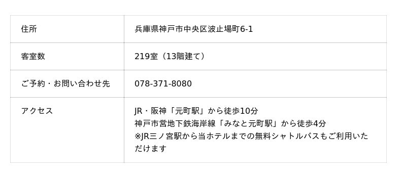 公式サイト:https://www.kobe-porttower-hotel.com/