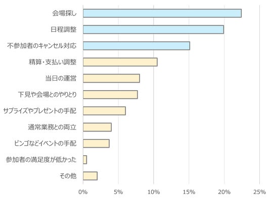 Q.大人数宴会の幹事をして大変だったこと(複数選択可)