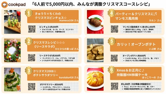 サラダも上位にランクインしていますが、クックパッドのレシピでは「クリスマスツリーサラダ」「リースサラダ」など、形状をアレンジしたレシピが多く投稿されています。通常のサラダとほぼ同じ材料費で「クリスマスらしさ」を表現できる点が人気の理由と見られます。