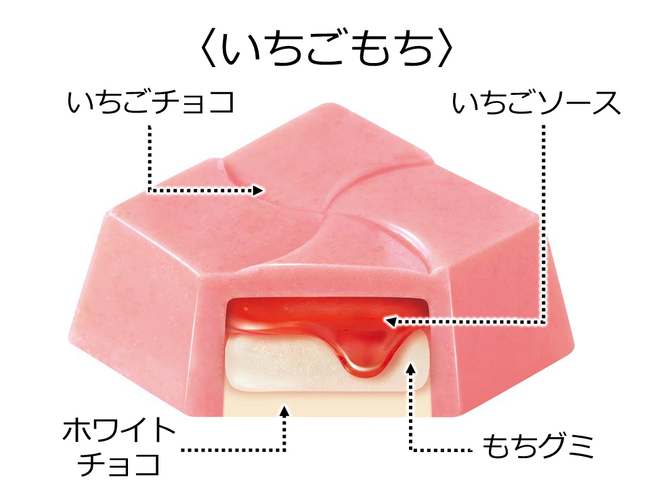 酸味の効いたいちごソースともちもち食感のグミをいちごチョコで包みました。