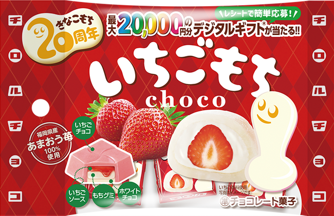 パッケージには今年発売20周年を迎える「きなこもち」の記念ロゴ入り。