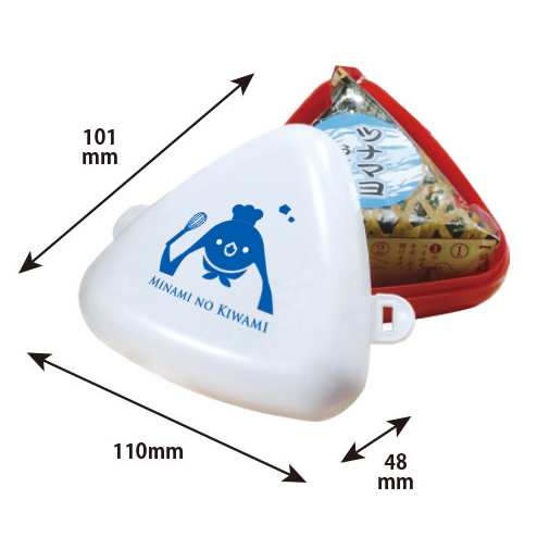 おにぎりケースは蓋の部分にはペンギン、本体部分はさらさら小粒のキャップと同じ元気な赤色で、コンビニのおにぎりくらいのサイズのものが入れられます。