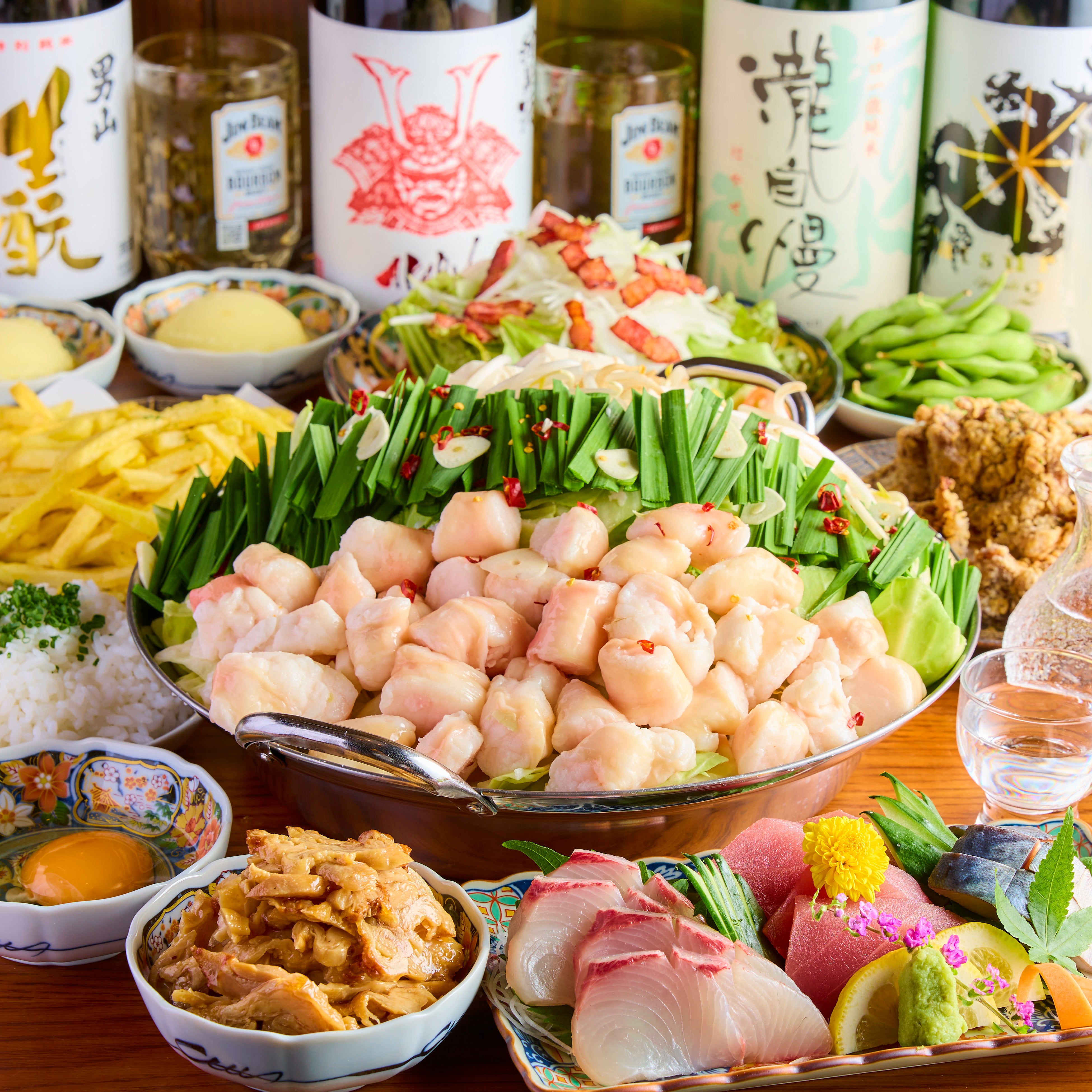 日本酒(徳利)+ビール、ハイボール、サワー、お茶割、焼酎、果実酒、カクテル、ソフトドリンクなど50種類