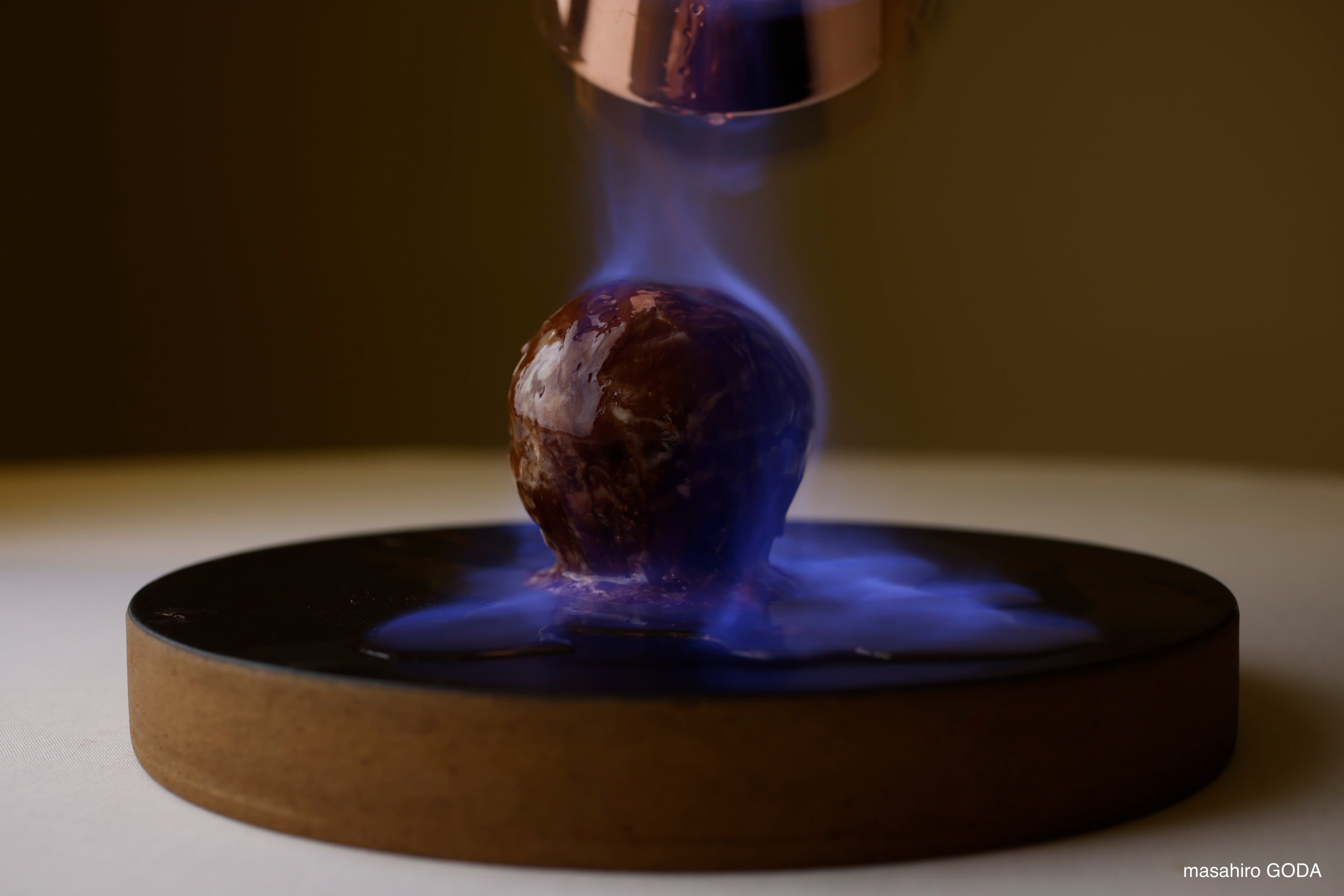 また、クリスマスデザートには、惑星を思わせる球体のチョコレートをリキュールでフランベする?オーロラ“をご用意。チョコレートに揺らめく蒼い炎が、この季節、北海道でも見られるという幻想的なオーロラを思わせます。エレガントなクリスマス菓子?ブッシュ・ド・ノエル”と共にお楽しみください。