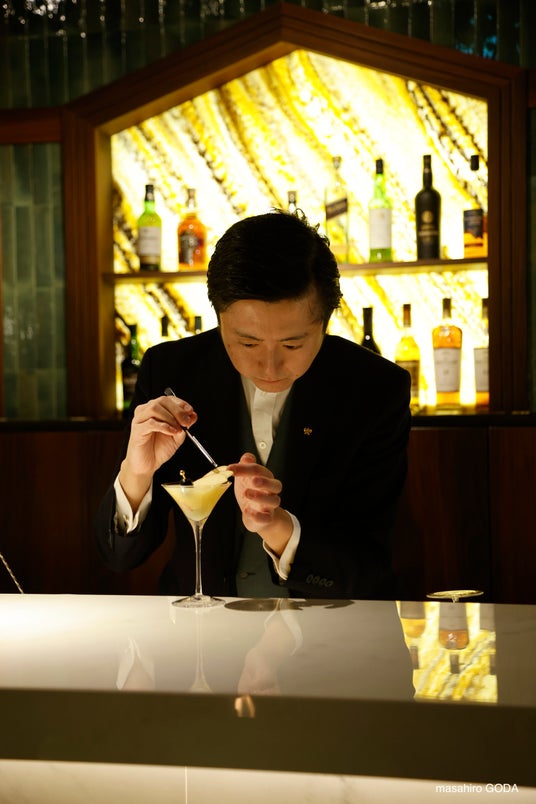 高く重厚な格天井の下に広がる、スタイリッシュでありながら歴史を感じさせる「Bar Hakodadi」。日本で最初に西洋りんごが栽培された七飯町のりんごなど、季節の果物を贅沢に使った冬のオリジナルカクテルをお楽しみいただけます。