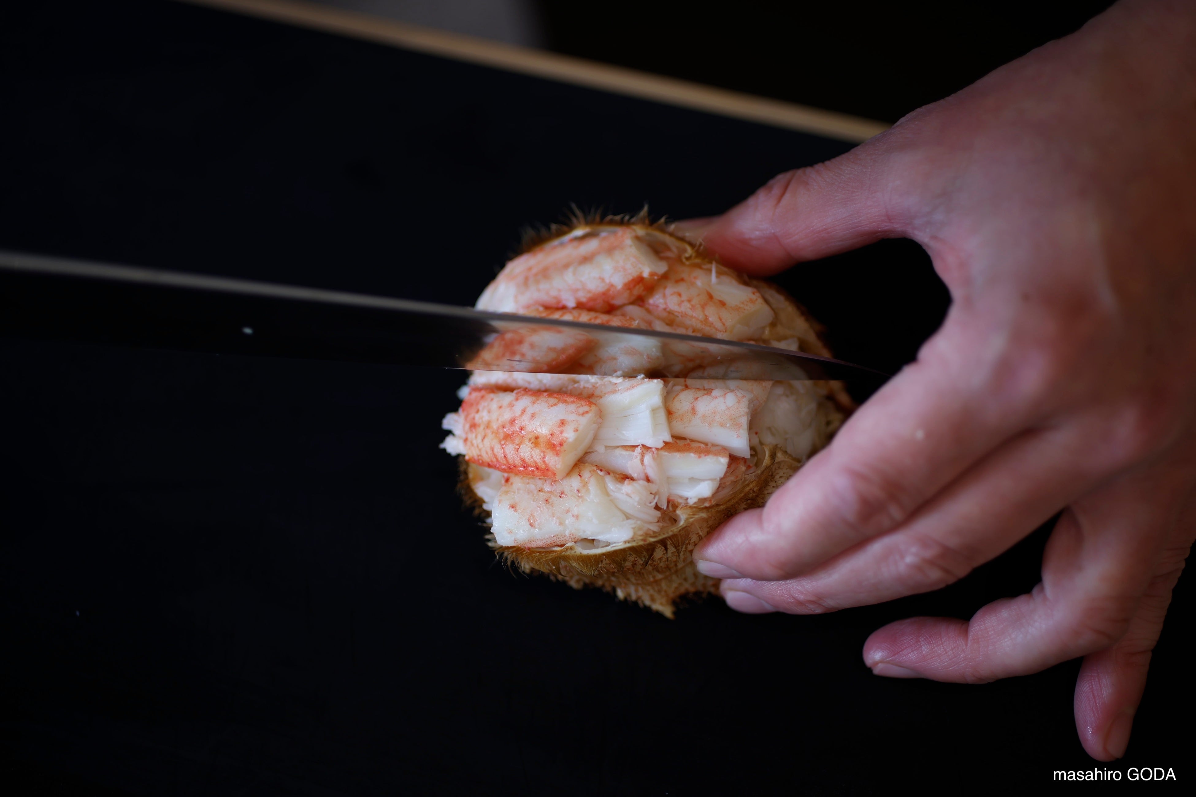 北海道が育む豊かな“EZO前”の粋が堪能できる「すし処 船見」では、道南の冬の味覚の真鱈の白子ぽん酢や蒸したての毛蟹、あんきも、釧路のししゃもの天ぷらなどが登場。