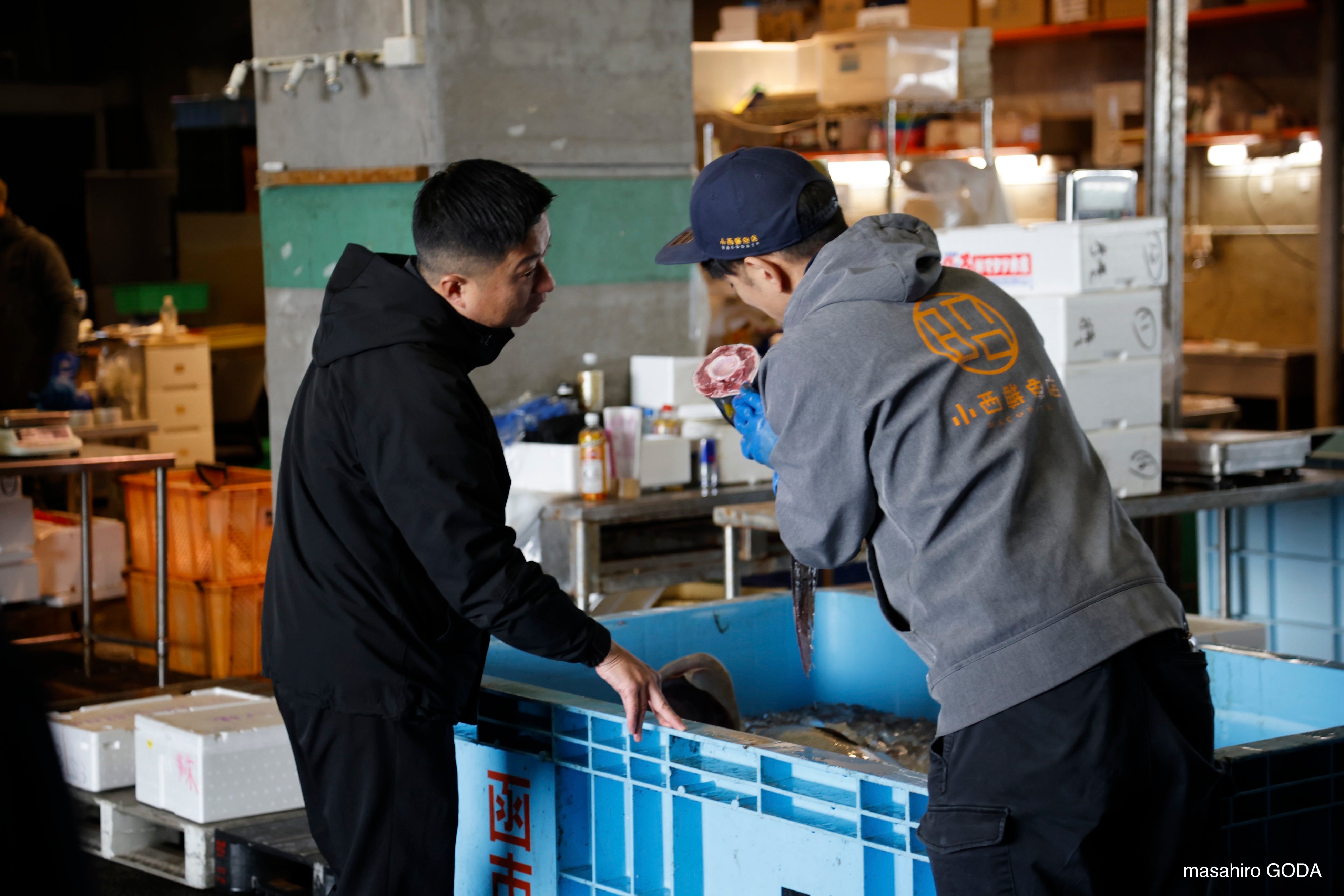 函館「マルヒラ川村水産」にて / 因藤シェフ