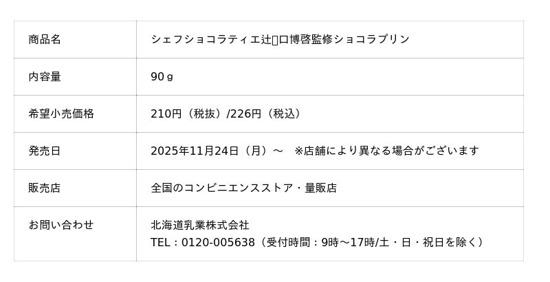 北海道乳業株式会社(本社:北海道函館市 、代表取締役社長:田島 英久)は、オーナーパティシエ・ショコラティエとして、モンサンクレール(東京・自由が丘)をはじめ、コンセプトの異なるブランドを多数展開している辻口博啓シェフとタイアップし、「シェフショコラティエ辻口博啓監修ショコラプリン」(税込226円 )を、2025年11月24日(月)より全国のコンビニエンスストア・量販店にて発売いたします 。