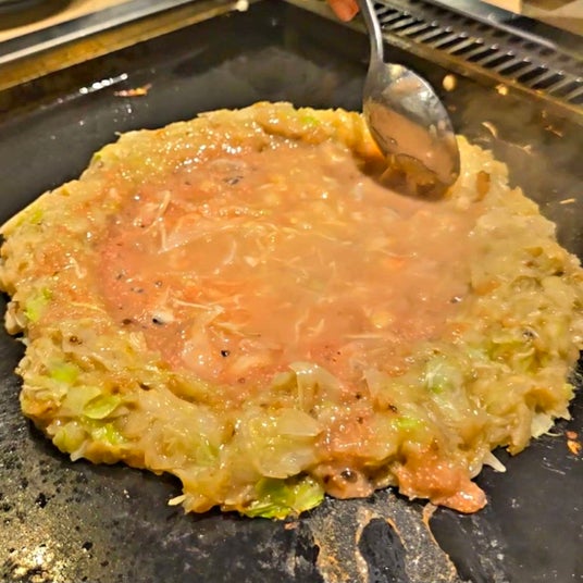 厳選した鰹節と北海道産羅臼昆布を使用し、毎日店舗でひく一番出汁を全もんじゃに採用。