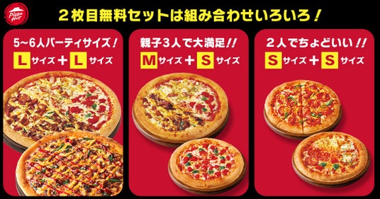 ピザの種類だけではなくサイズも組み合わせ自由自在なので、みんなにピッタリがきっと見つかるおトクな2枚目無料セットをぜひお試しください。