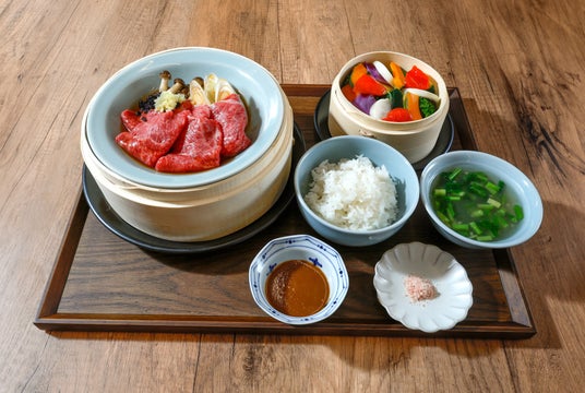 せいろでごはんの定食一品料理にご飯、スープ、蒸し野菜がついたバランスの良い体にやさしい定食です。あつあつのお料理を、せいろにのったままお客様の元へお届けいたします。