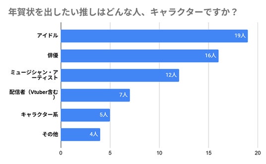 年賀状を贈りたい“推し”のジャンルは?トップはアイドル・俳優