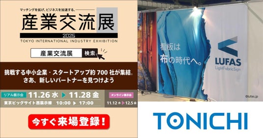 世界最大級の新聞印刷会社、東日印刷株式会社(本社:東京都江東区、社長:西川 光昭、以下TONICHI)は、11月26日(水)~28日(金)の3日間、東京ビッグサイトで開催される「産業交流展2025」に出展いたします。TONICHIで製造、販売している次世代型ファブリックサイネージ「LUFAS(ルーファス)」をご紹介します。